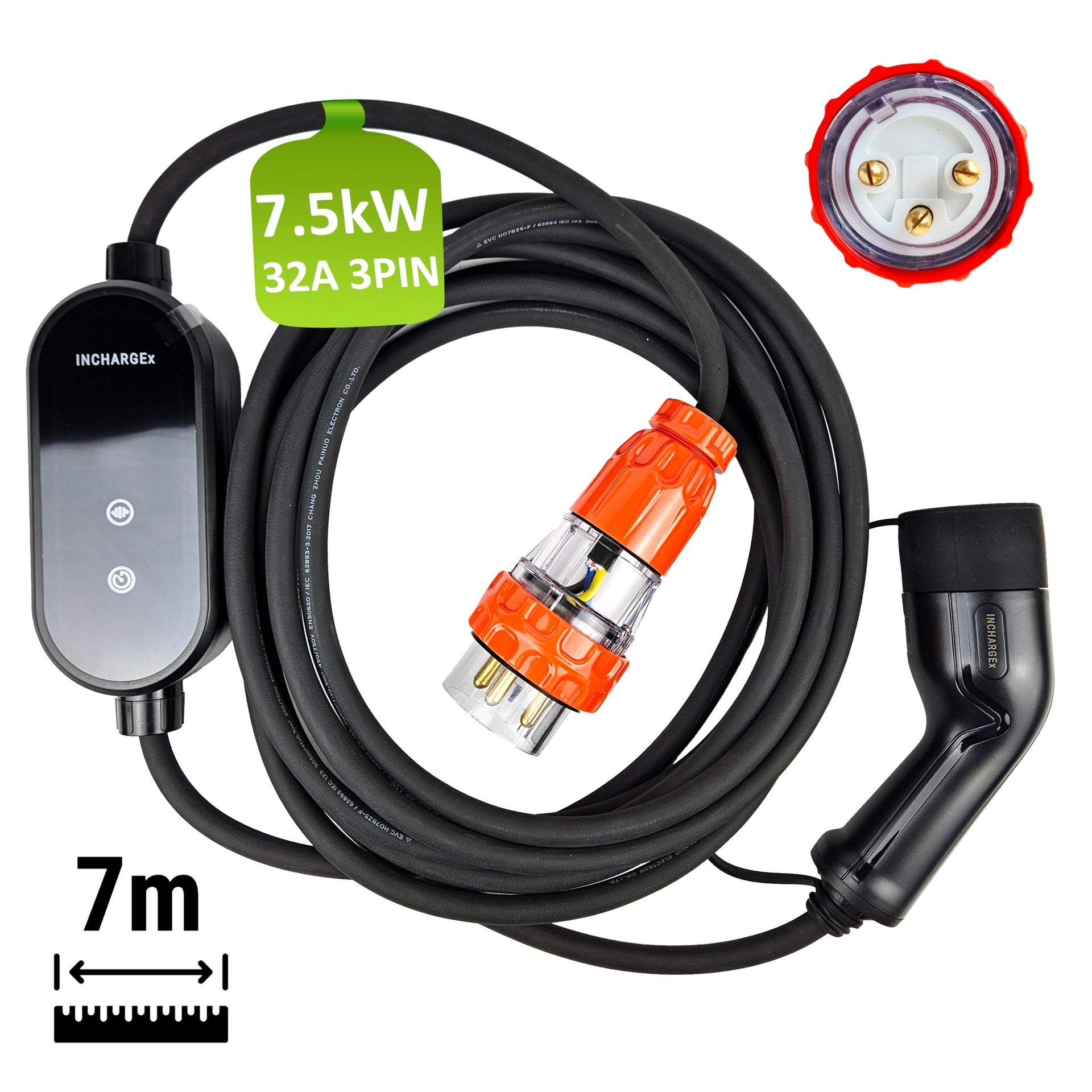 ✅ INCHARGEx Premium Gen 2 Charger 7.5 metres end-to-end | 32 Amp | 3 Pin to Type 2 Portable EV Charger Provides maximum charging power of 7.5kW on 32 Amp Single-phase for EV at home, office, hotels, sites and campground around Australia.
