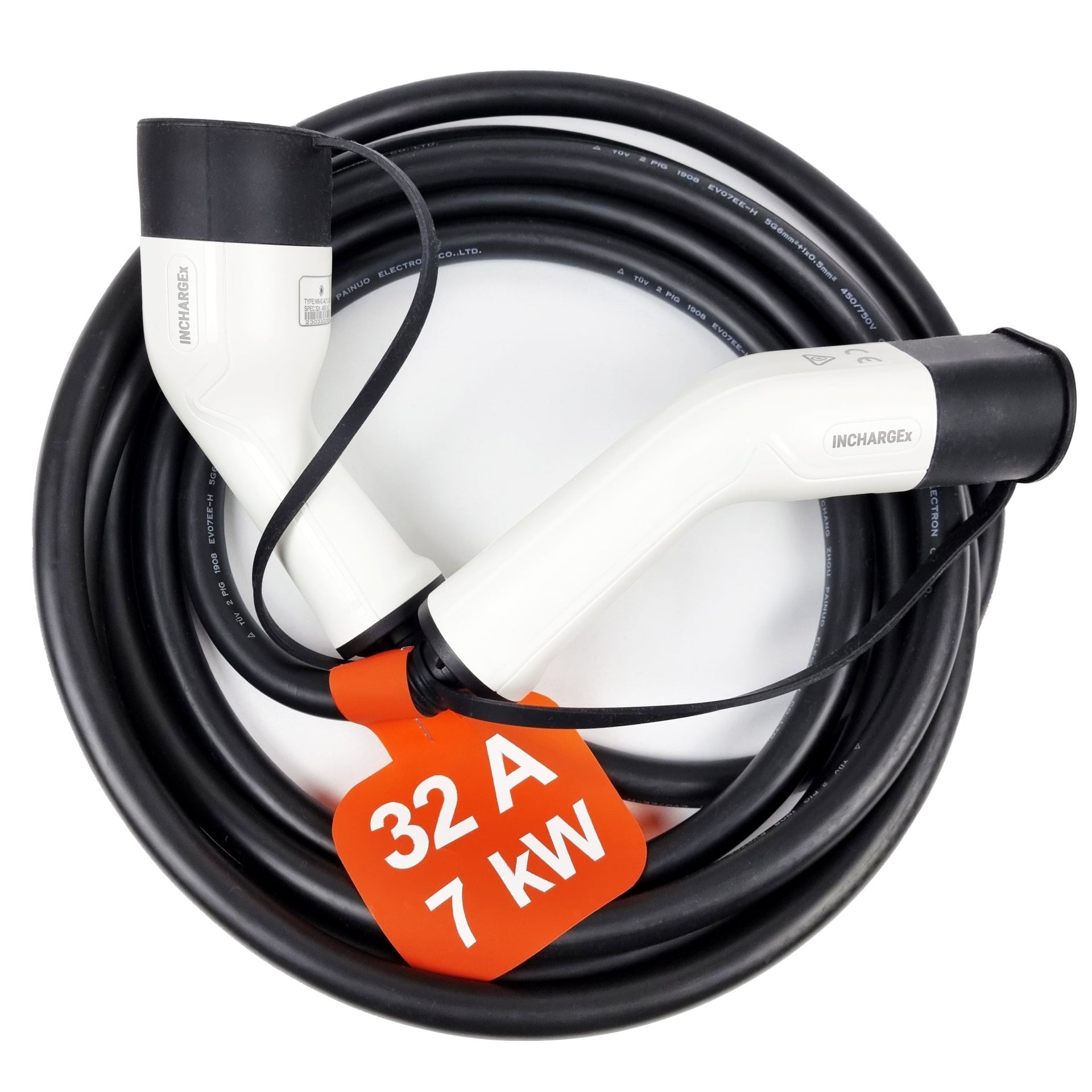 Some charging configurations for this cable: – AC 1 phase, 16amp, 230v : charging power is 1 x 16 x 230 = 3.6kw – AC 1 phase, 32amp, 230v : charging power is 1 x 32 x 230 = 7.5kw