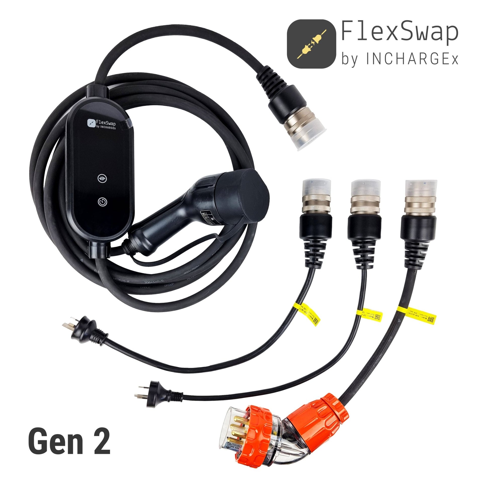 ✅ Upgraded Generation 2 FlexSwap Charger Kit with 3 Interchangeable Tails for versatility: Comes equipped with three swappable tails to cater to various charging needs. Automatic current setting detection. Total length is 5.5 metres end to end including tails: