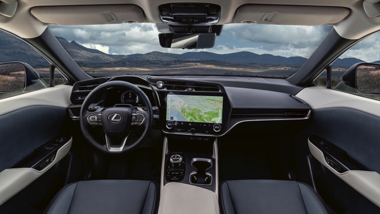 The flagship RZ 550e F Sport takes performance to another level with 300 kW of power, making it an even more engaging drive. It also introduces a groundbreaking new technology: a steer-by-wire system with an optional yoke-style steering wheel. This system provides an incredibly responsive and direct steering feel, eliminating the need for hand-over-hand turning in tight corners. The F Sport also features unique interior and exterior styling, larger wheels, and a sport-tuned suspension for a more dynamic driving experience.