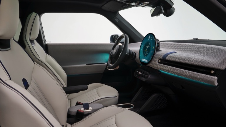 The updated MINI Cooper features a fresh, minimalist design both inside and out. The most striking change is the interior, which now centers around a large, circular OLED touchscreen display—a clever nod to the original MINI’s central instrument cluster. This screen controls most of the car’s functions, although a few key physical toggle switches remain for a touch of classic MINI charm. The car’s cabin also uses sustainable materials, with a complete absence of leather and chrome.