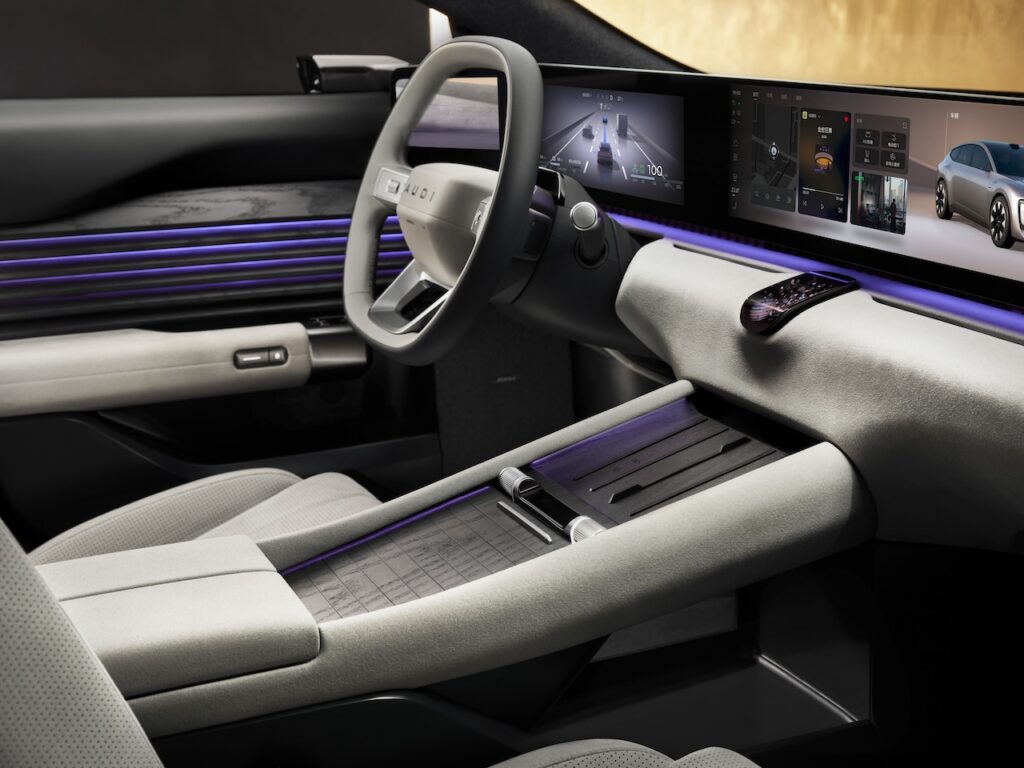 The E5 positions itself in the premium mid-size segment, aiming at rivals such as the Xiaomi SU7, BMW i5 and Mercedes EQE. Dimensionally, it measures approximately 4,881 mm long, 1,959 mm wide and 1,478 mm tall – making it 179 mm shorter, 59 mm wider and 37 mm lower than a BMW i5 sedan. Built on a clean-sheet design, the E5 deliberately departs from Audi’s current design language. It abandons the familiar four-ring emblem in favour of a cleaner, simplified aesthetic, and its rear profile appears optimised for aerodynamic efficiency.